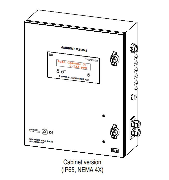 描述:壁掛式金屬柜中的低濃度臭氧監測儀,防濺,1、3或6通道,規格與BMT 932相同